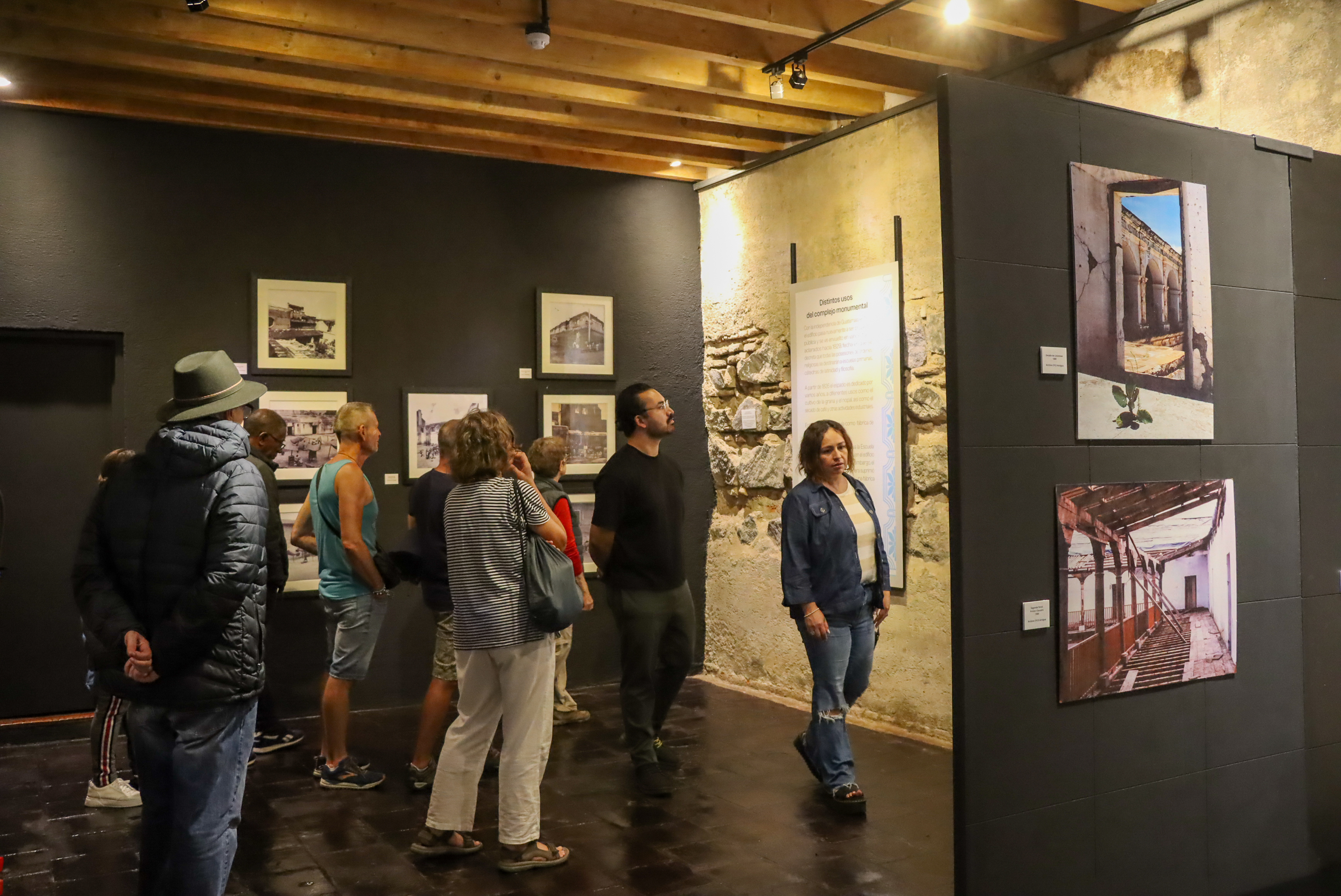 El museo expone fotografías antiguas y contemporáneas, junto con mapas históricos y paneles informativos, que muestran los diferentes usos que tuvo el inmueble a lo largo del tiempo, entre ellos colegio, iglesia, fábrica de textiles, patios de café y mercado cantonal. También se presenta el proceso de restauración iniciado en 1992 gracias a la cooperación entre España y Guatemala, que permitió recuperar el valor patrimonial del conjunto y convertirlo en un espacio de proyección regional.
