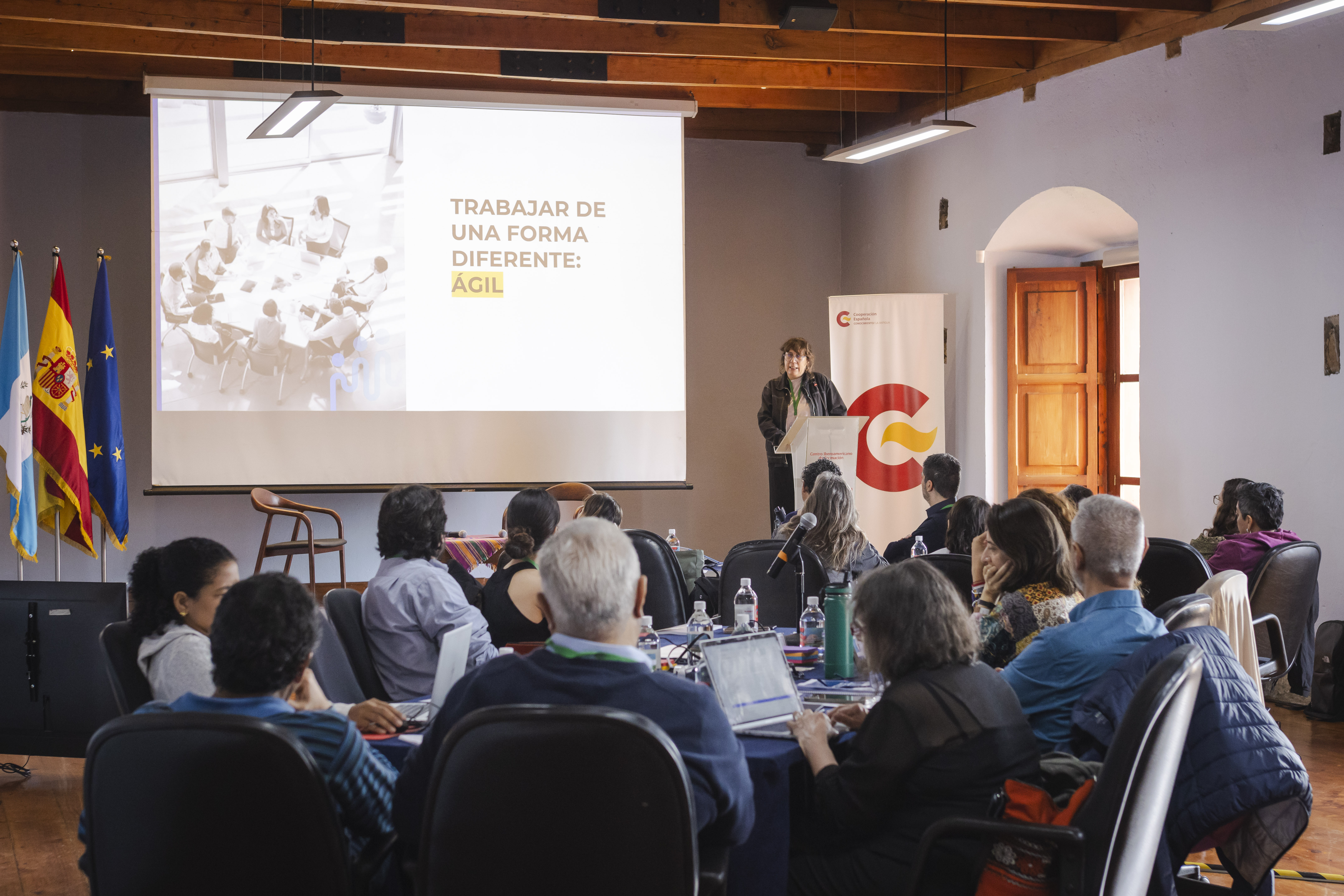 La transformación se consolidó en 2023 con el lanzamiento del renovado Programa Intercoonecta de Conocimiento e Innovación para el Desarrollo en América Latina y el Caribe, que afianzó el papel de los Centros de Formación como nodos de inteligencia colectiva. Esta nueva etapa introdujo programaciones plurianuales diseñadas para responder a retos regionales de manera sostenida y consolidó las líneas temáticas prioritarias del CFCE Antigua, que se centran en la transición ecológica y en la población en contextos de movilidad. Con ello, el Centro dejó de ser únicamente un espacio de formación presencial para convertirse en un laboratorio de cocreación, innovación pública e inteligencia colectiva, donde instituciones y sociedad civil colaboran en la construcción de soluciones compartidas mediante redes abiertas, talento técnico y metodologías ágiles para la formulación de políticas guiadas por misiones.