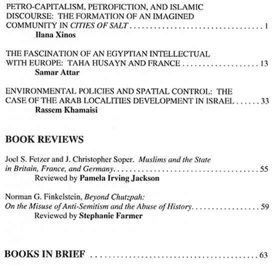 La revista Arab studies quarterly fue fundada en 1979 juntamente por el fallecido profesor Edward Said e Ibrahim Abu-Lughod que tenían la visión de que fuera una plataforma de investigación académica para contraargumentar la propaganda árabe encubierta por una jerga académica. Desde su comienzo se ha considerado como una revista de referencia que publica artículos sobre los árabes, su historia y sus instituciones sociales y políticas. La revista continúa en la tradición de sus fundadores y está comprometida en promocionar un humanismo basado en la investigación contra los discursos orientalistas dominantes en el campo de los estudios árabes e islámicos. Tiene una página web.