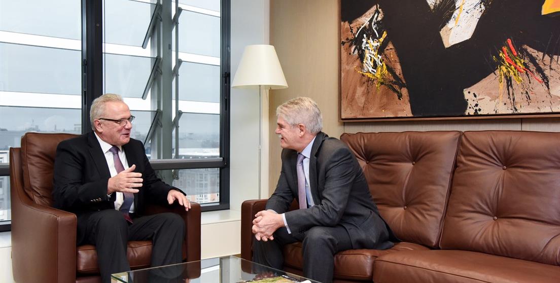 El Ministro de Asuntos Exteriores y Cooperación se entrevista con la Alta Representante para la Política Exterior y el Comisario Europeo de Cooperación Neven%20Mimica%20y%20Alfonso%20Dastis.jpg El...La UE destaca en HÁBITAT III un programa de agua y saneamiento que apoya la Cooperación Española en Nicaragua
