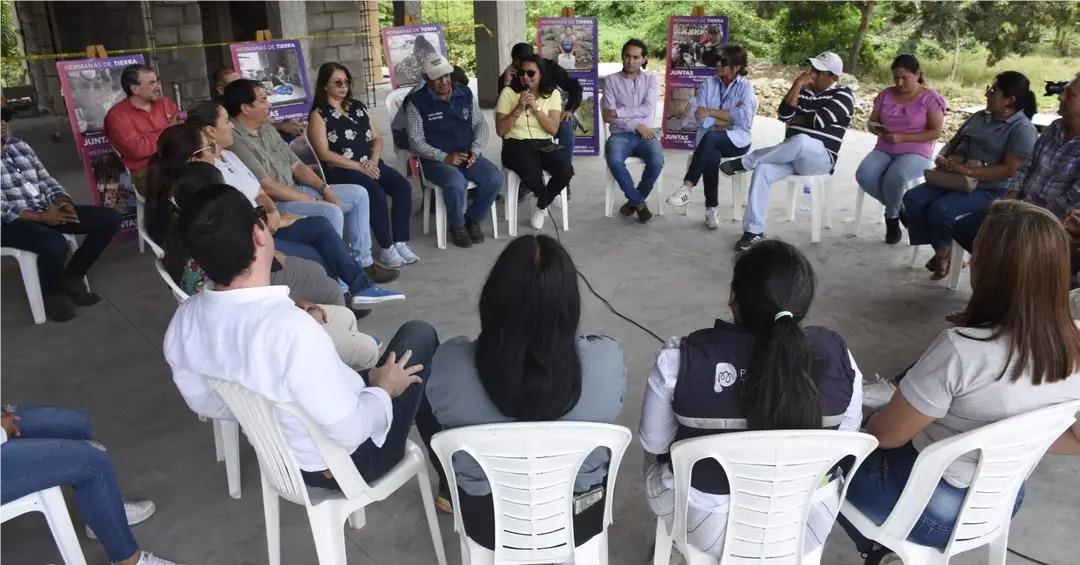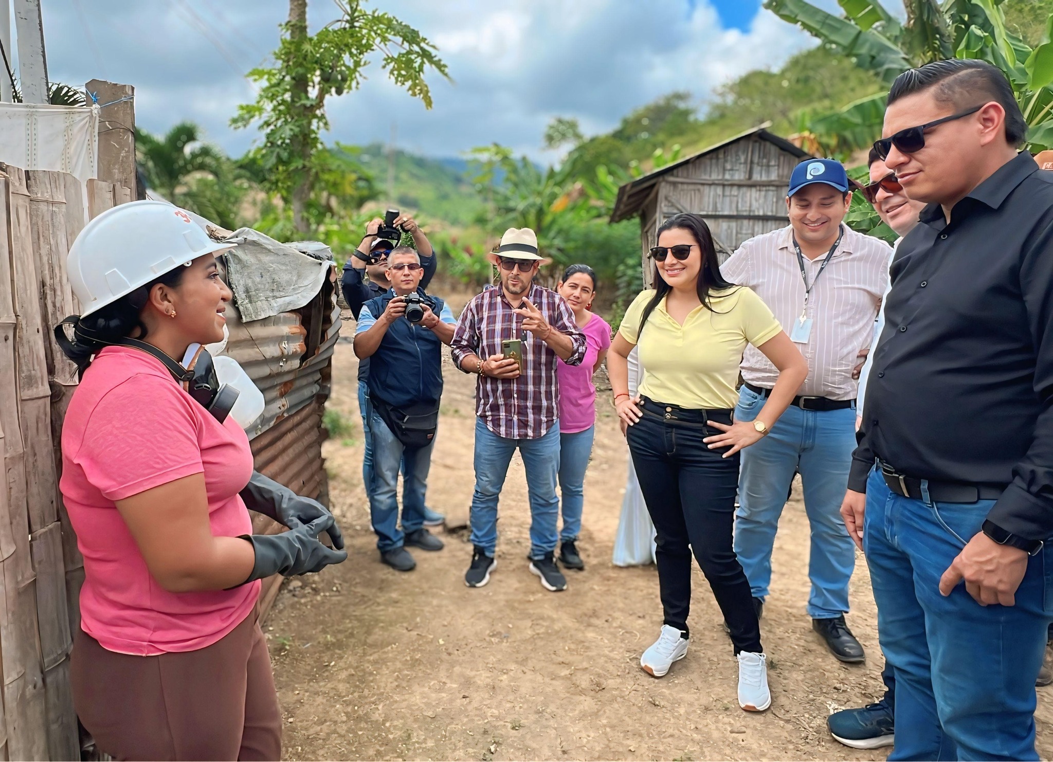 La participación social de la población, y la implicación activa de las mujeres se han identificado como una de las lecciones aprendidas en Portoviejo para el buen funcionamiento del programa. En la imagen, la comitiva durante su encuentro con la agrupación Hermanas de Tierra, una asociación fundada a partir del programa. (Foto: Alcaldía de Muisne).