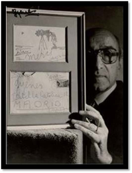 © Autorretrato del fotógrafo en su estudio con un dibujo de Picasso dedicado.